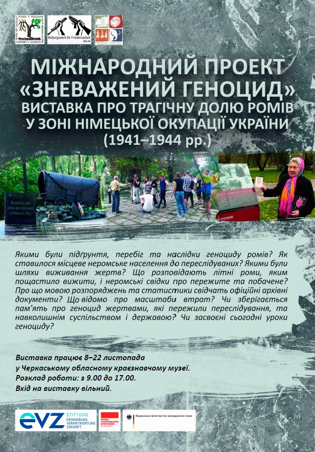 8 листопада о 16.00 у Черкаському обласному краєзнавчому музеї відбудеться відкриття виставки, що стала результатом міжнародного проекту «Зневажений геноцид». Доля ромів у зоні німецької окупації України під час Другої світової війни.