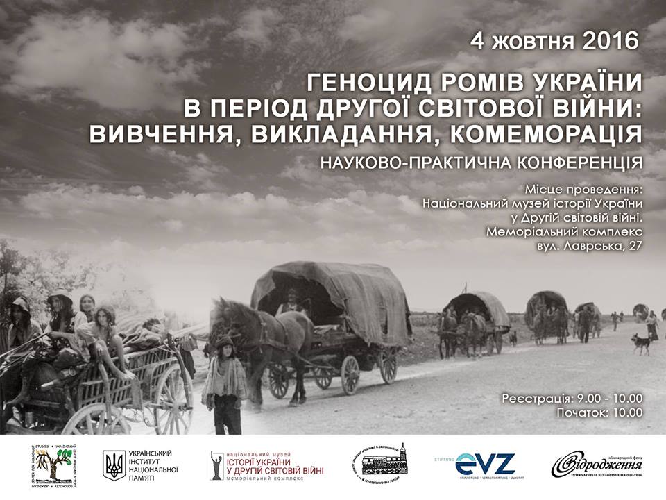 У рамках вшанування в Україні 75-тих роковин трагедії Бабиного Яру Український центр вивчення історії Голокосту, Український інститут національної пам’яті, Національний музей історії України у Другій світовій війні та Інститут української археографії та джерелознавства ім. М.C. Грушевського НАН України в партнерстві з Міжнародним фондом «Відродження» та за підтримки німецького фонду «Пам’ять, відповідальність та майбутнє» проводять 4 жовтня 2016 р. в Києві міжнародну науково-практичну конференцію «Геноцид ромів України в період Другої світової війни: вивчення, викладання, комеморація».
