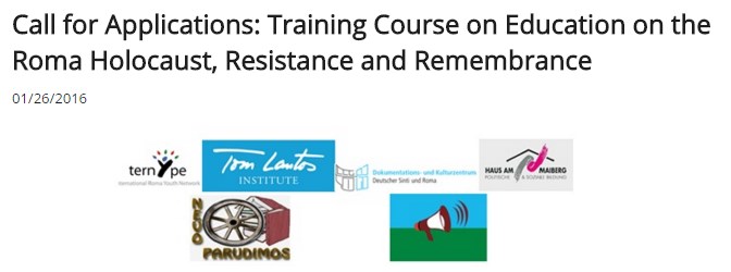 Інститут ім. Тома Лантоша, Центр документації німецьких сінті та ромів та Міжнародна ромська молодіжна мережа «Терніпе» оголошують прийом заявок на участь у навчальному курсі «Голокост ромів: викладання про спротив та пам’ять», що відбудеться у Гайдельберзі (Німеччина) 16-22 березня 2016 року. Термін подачі заявок – до 10 лютого 2016 р.
